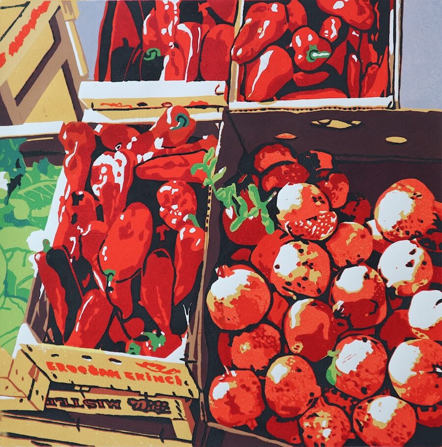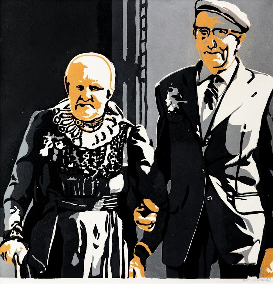 Linoprint Linosnedes, afgedrukt met behulp van een eetlepel. Fietsen 60×37 cm Markt van Trogier 48×48 cm Boshuisweg 42×30 cm Dorpskerk De Glind 30×42 cm Grootouders 48×48 cm Zelfportret 48×48 cm Ons 20×20 cm Linde 20x20cm Matthieu van de Poel 48×30 cm Echtpaar Heezen 48×48 cm Boe! 48×30 cm